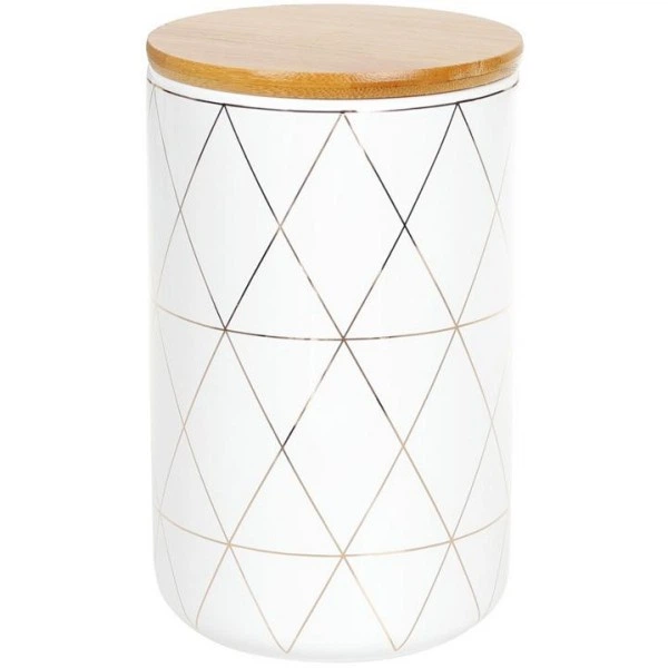 Банка Merceyl "Золоті Ромбі" 850мл керамічна з бамбуковою кришкою, біла (109054)