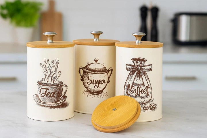 Набір для зберігання чаю, кави та цукру, якісний метал+дерево