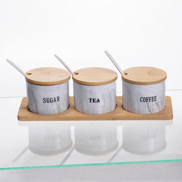 Набір порцелянових банок на підставці 3 шт по 180 (мл) Сірий SCT-660