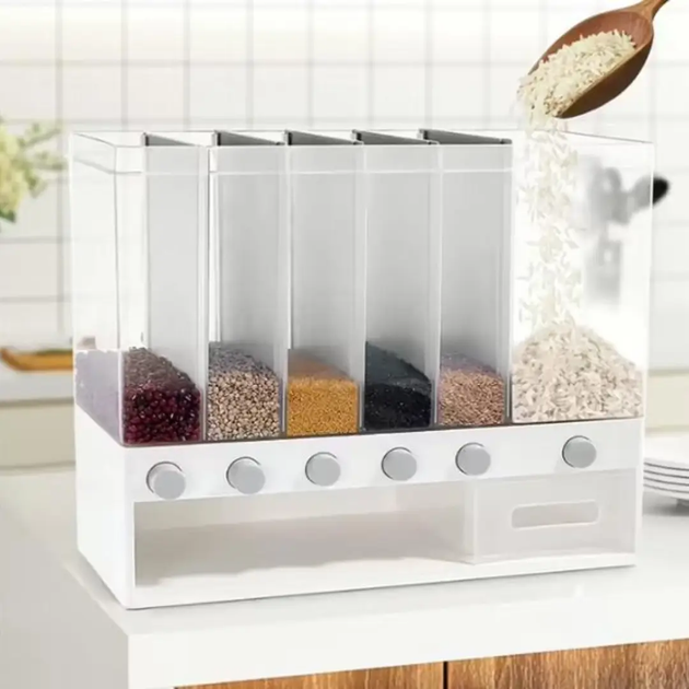 Контейнер для круп з дозатором на 6 секцій органайзер для зберігання та роздачі сипучих продуктів