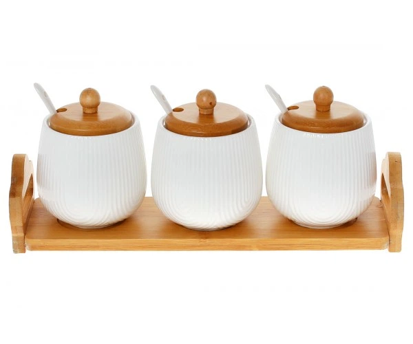 Набір банок із ложками (3 шт) 350мл для сипучих продуктів на бамбуковій підставці Naturel