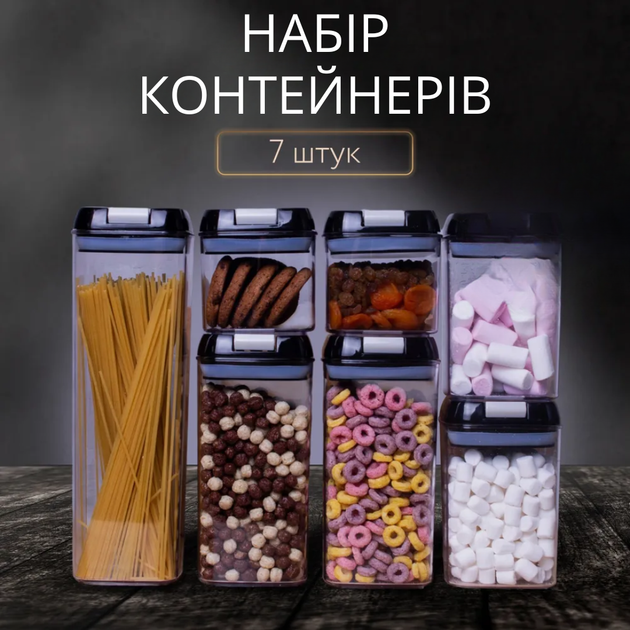 Набір контейнерів для зберігання сипких круп 7 пластикових ємностей з вакуумною кришкою органайзери для кухні