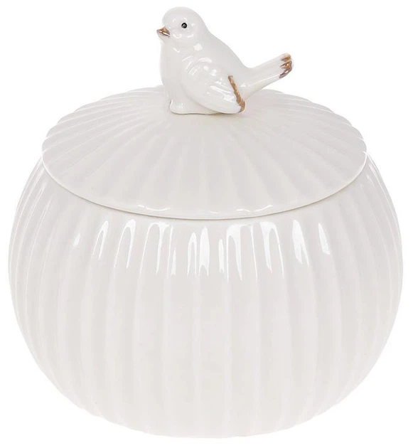Банку порцелянова "Пташка" 500мл з об'ємним декором, білий глянець