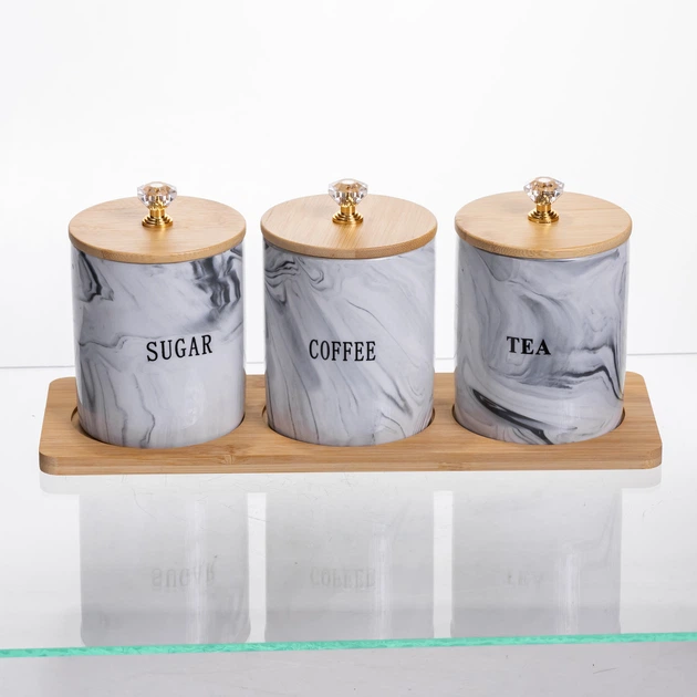 Набір порцелянових банок на підставці 3 шт по 350 (мл) Сірий SCT-662