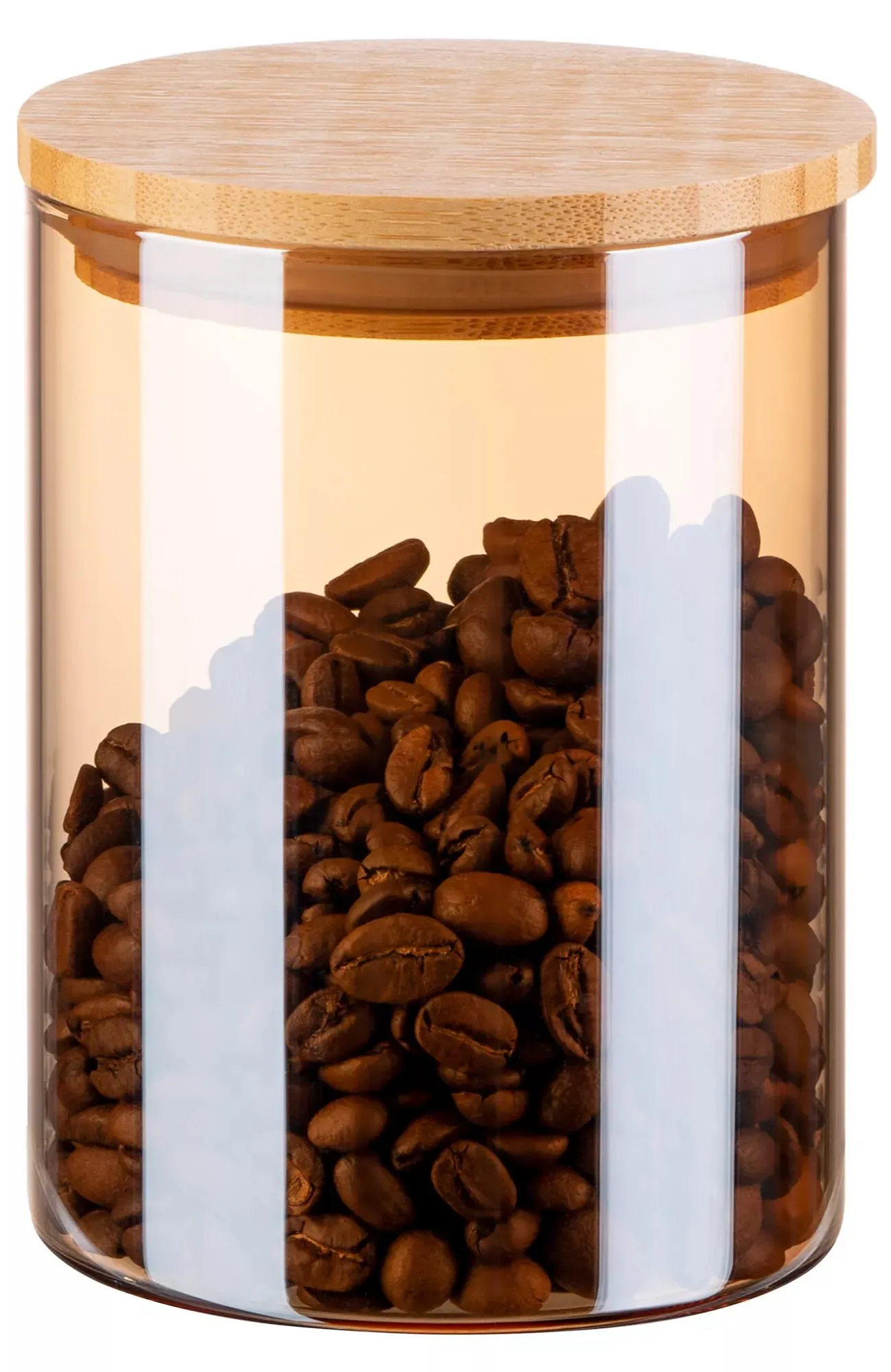 Банка для зберігання Ardesto Golden Moon, 540мл, скло, бамбук, кругла, золотистий