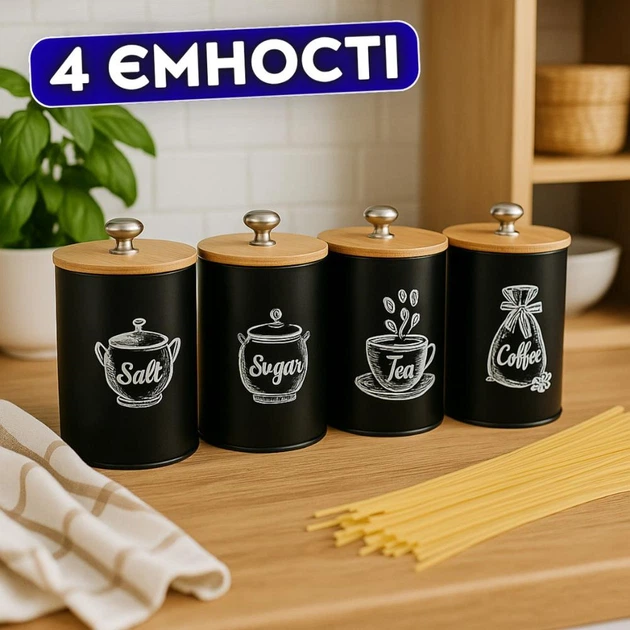 Набір банок та ємностей для сипких продуктів 4 штуки 1.1-1.5л харчові ємності в наборі для зберігання харчових продуктів чор