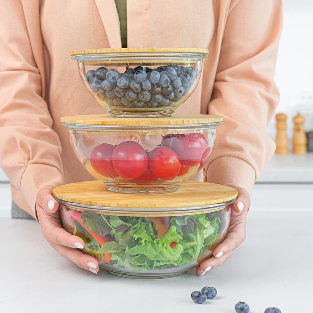 Набір керамічних банок BonaDi Organic 3 штуки 650 мл з бамбуковими кришками 304-940