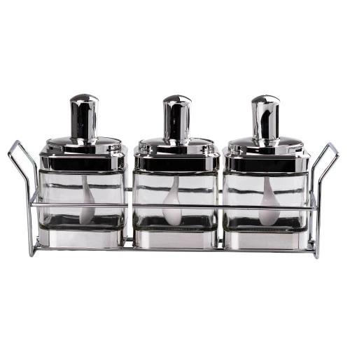 Набір банок для сипучих продуктів з ложкою на підставці 3 штуки Хром TS Kitchen HP531FS1030Y