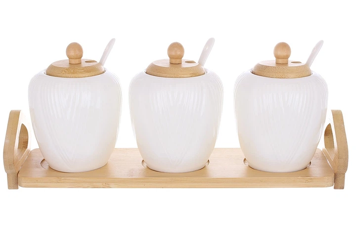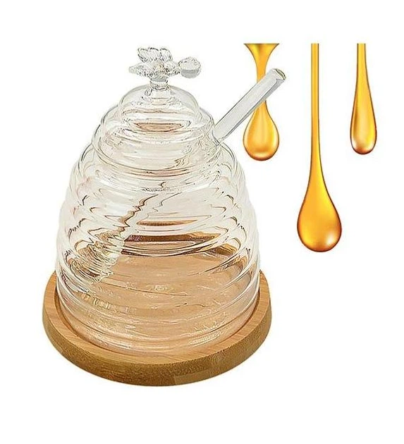 Банка для меду з ложкою на бамбуковій підставці 500 мл R30172