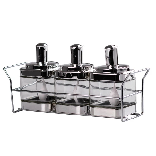 Ємності для сипучих продуктів TS Kitchen, набір із 3 шт на металевій підставці, хром