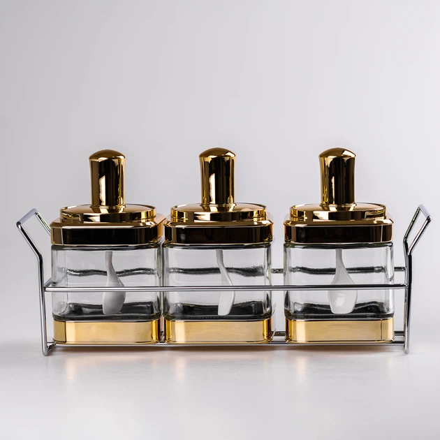Набір банок для сипучих продуктів TS Kitchen із ложкою на золотій підставці (HP531FS1030J)