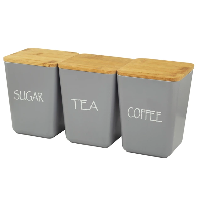 Набір банок для сипучих продуктів з нержавіючої сталі з дерев'яною кришкою кава, чай, цукор Edenberg EB-147 3шт 1300мл Чорни