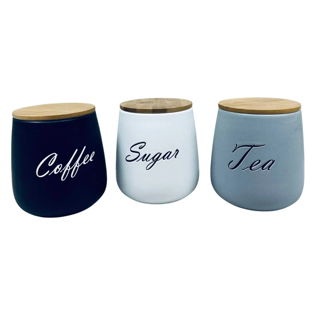 Набір керамічних банок з бамбуковими кришками Sugar, Tea, Coffee 3 шт 1 л 11,5х11,5х13 см BonaDi 304-034