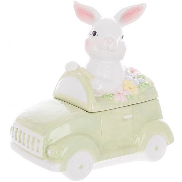 Банку керамічна "Зайчик у Машині" для печива та сладостей 800мл, зелена (244783)