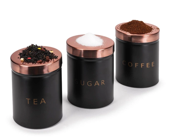 Набір ємностей (банок) для сипучих продуктів 3 шт. Kamille з нержавіючої сталі для кави цукру специй Чорний