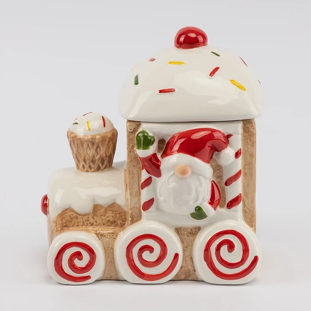 Новорічна ємність для зберігання Імбірний потяг керамічна з кришкою 19х14х21 см Бежева (127-81-6037-013)