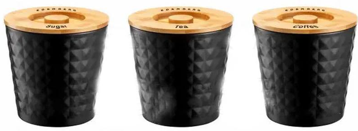 Набір банок для сипучих продуктів з нержавіючої сталі з дерев'яною кришкою кава, чай, цукор Edenberg EB-146 3шт 1400мл Чорни