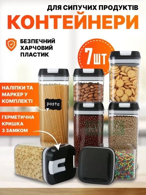 Набір харчових контейнерів для сипучих продуктів, органайзери для круп та спецій з 7шт різних розмірів, герметичні кришки із