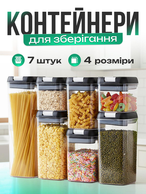 Набір контейнерів на 7шт для зберігання харчових продуктів сипучих і рідин із герметичною кришкою