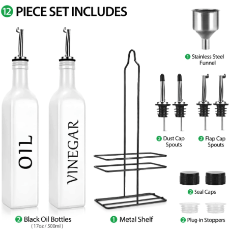 Набір пляшок для олії та оцту DaiRen Kitchen 500 мл | Скляний диспенсер з тримачем і нержавіючим носиком, білий, 2 шт.