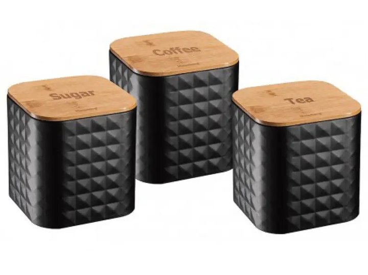 Набір банок для сипучих продуктів з дерев'яною кришкою кава, чай, цукор Edenberg EB-145 3шт 1500мл Чорний