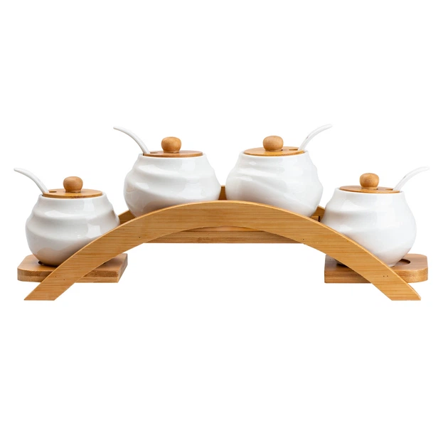Набір банок для сипучих продуктів з бамбуковою кришкою 4 штуки по 300 мл Білий Yiwu HP1210