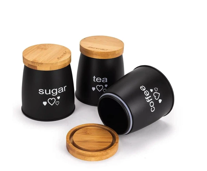 Набір ємностей (банок) для сипучих продуктів 3 шт Kamille для кави цукру специй Чорний