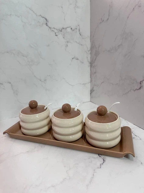 Набір банок для сипучих продуктів TS Kitchen кераміка з кришками і ложками на підставці 350 мл 4 предмети