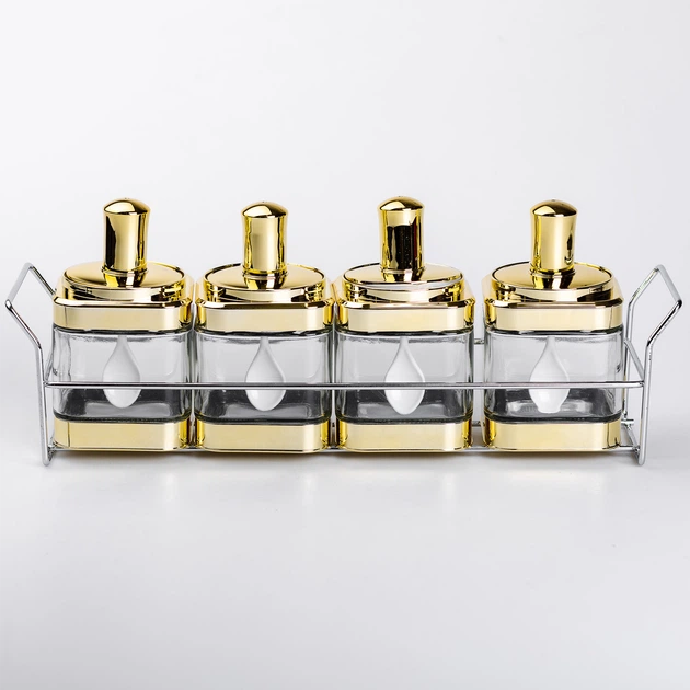 Набір банок для сипучих продуктів, 4 штуки, 350 мл, скляні на металевій підставці, Аксесуар для кухні