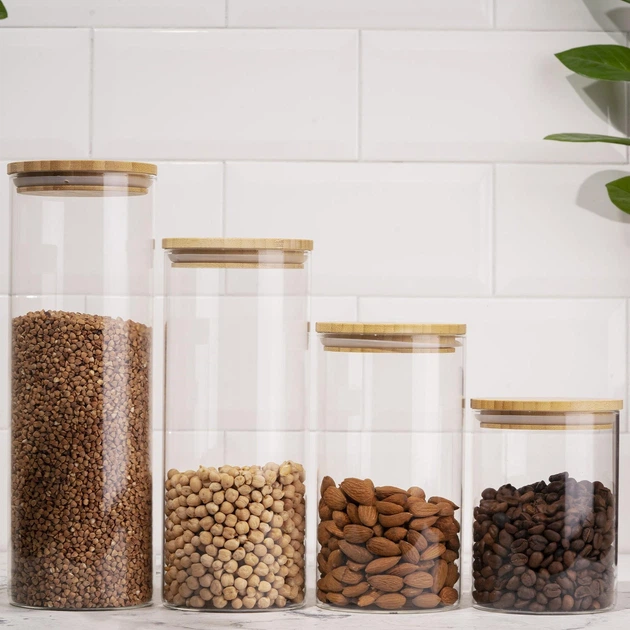 Набір банок для сипучих продуктів TS Kitchen HP245 кераміка на бамбуковій підставці по 250 мл 4 шт