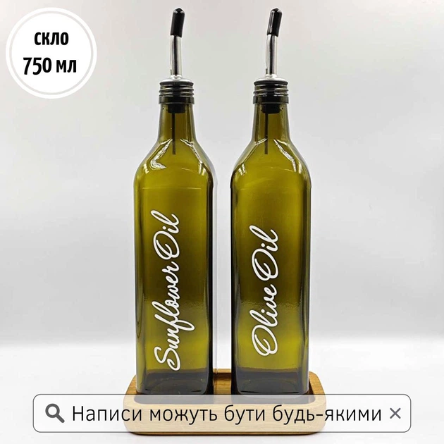 Набір скляних пляшок для олії та оцту з дерев'яною підставкою 2 шт. 750 мл (англ.)