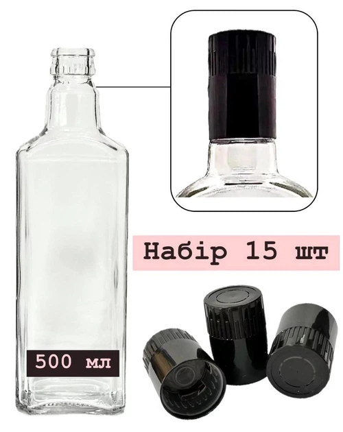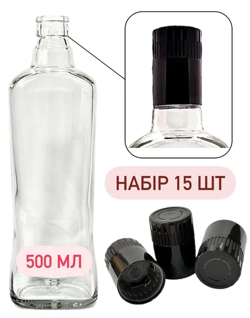 Набір із 15 скляних пляшок 0.5 л з кришкою гуала, чорний