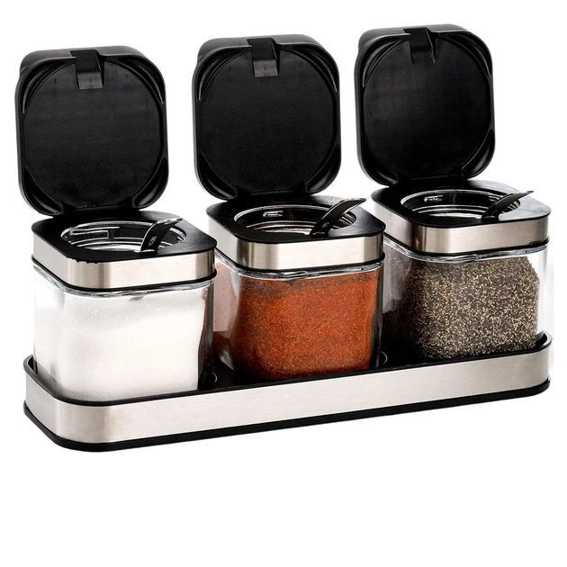 Набір із 3 контейнерів для солі, перцю, спецій та приправ із кришками та ложками
