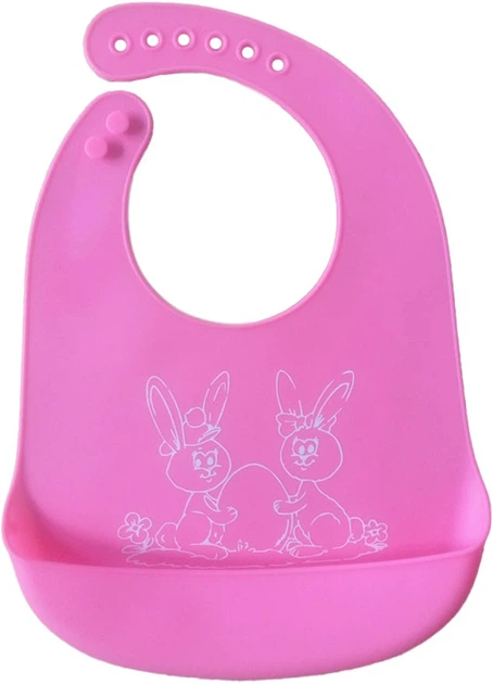 Слюнявчик силіконовий дитячий з кишенькою та малюнком 2Life 32х23 см Рожевий (vol-10183)