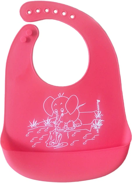 Слюнявчик силіконовий дитячий з кишенькою та малюнком 2Life 32х23 см Малиновий (vol-10179)