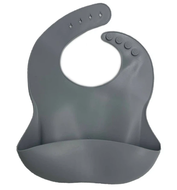Дитячий слиньчик силіконовий 30-23 см з чотирма застібками і кишенею Сірий (n-9688)