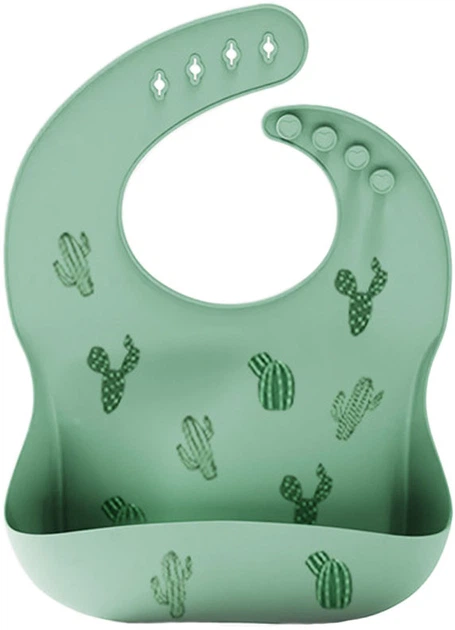 Слюнявчик силіконовий дитячий з малюнком кактуси 30х24 см Зелений