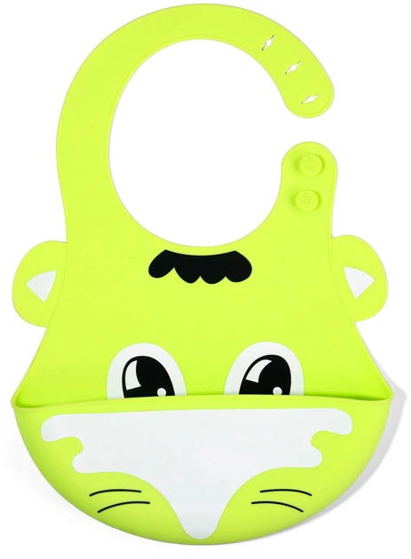 Слюнявчик силіконовий дитячий 3D Котик Зелений vol-10213