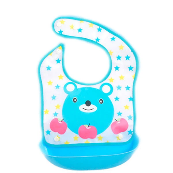 Слюнявчик ПВХ з кишенею, що відстібається, 35х23 см з ведмедем Блакитний (vol-1060)