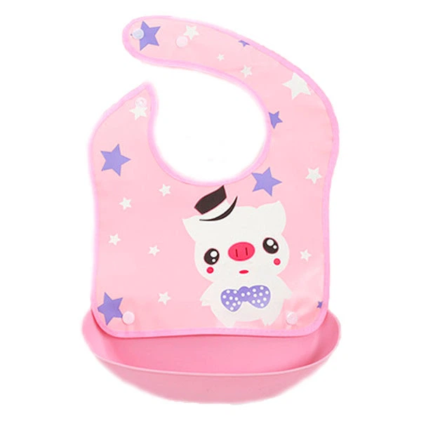 Слюнявчик ПВХ з кишенею, що відстібається, 35х23 см зі свинкою Рожевий (vol-1061)