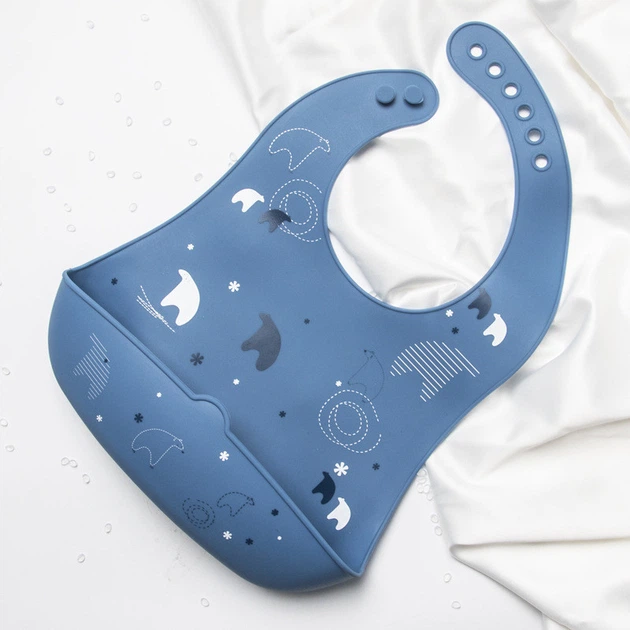 Слинявчик силіконовий з кишенею Полярний Ведмідь Синій SBP10