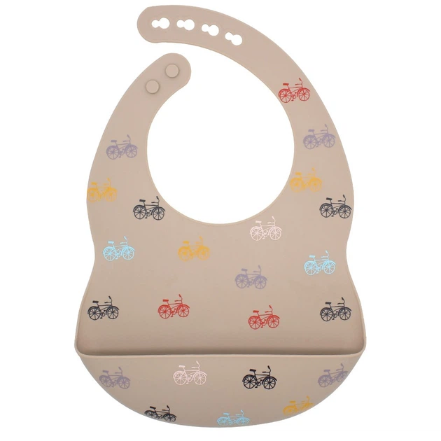 Силіконовий нагрудник з велосипедами для дітей 1 шт. Бежевий