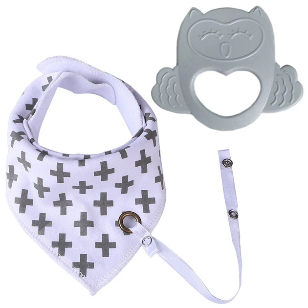 Слинявчик-нагрудник з тримачем для соски Сірий і силіконовий прорізувач 2Life Сова Y5 v-11784