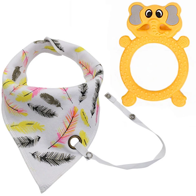 Слинявчик-нагрудник з тримачем для соски і силіконовий прорізувач 2Life Слон Y28 Жовтий v-11788