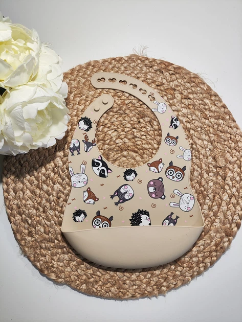 Нагрудник силіконовий дитячий Тваринки бежевий