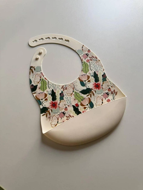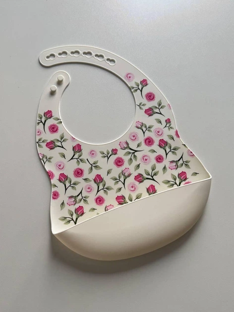 Силіконовий слюнявчик з принтом, дитячий силіконовий нагрудник Троянди Білі