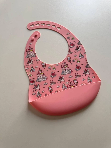 Силіконовий слюнявчик з принтом, дитячий силіконовий нагрудник Замки та єдиноріжки Рожевий Рожеві