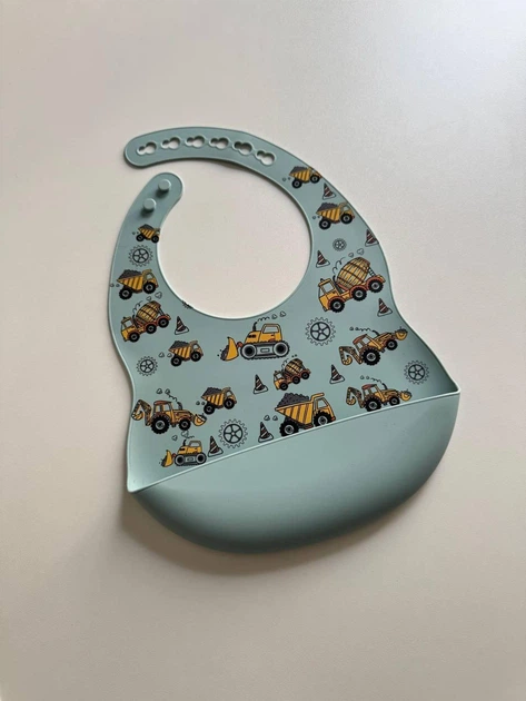 Силіконовий слюнявчик з принтом, дитячий силіконовий нагрудник Машинки Блакитний