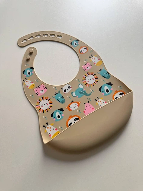 Нагрудник силіконовий колір Бежевий з малюнком Звірі ВР380