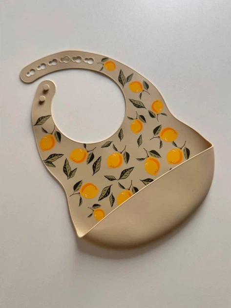 Силіконовий слюнявчик з принтом, дитячий силіконовий нагрудник Лимони Бежеві